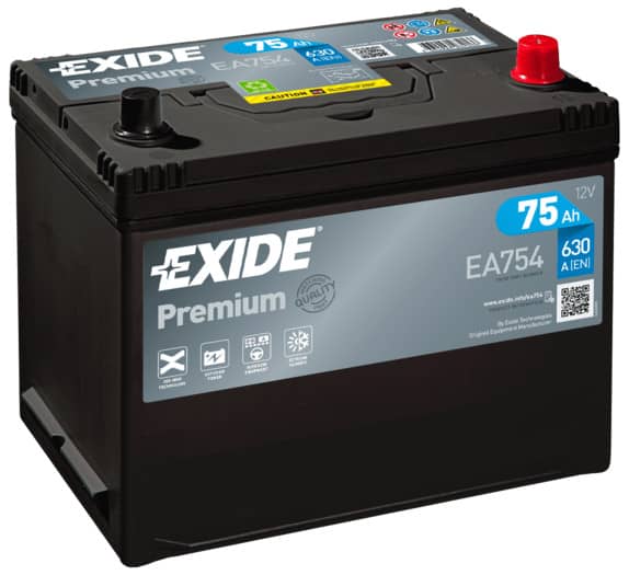 Акумулатор EXIDE PREMIUM 75AH 630A R+ JIS EXIDE Premium са акумулатори проектирани по най-новите стандарти за автомобили. В тях са вградени най-модерните технологии: Expanding Metal, STS, Calcium и Continuous Casting за по-тънки и качествени плочи. Акумулаторите имат повече оловни плочи в клетките си, така стартовия ток е увеличен с над 30%, дори и в най-мразовитите нощи.