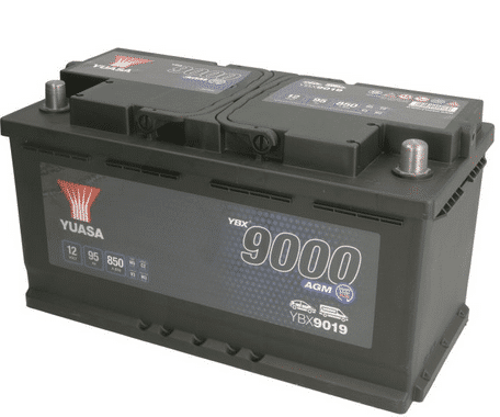 Battery YUASA 12V 95Ah/850A START&STOP AGM; YBX9000 AGM Start Stop Plus (R+ standard) 353x175x190 B03 – fitting flange 10.5 mm (agm/starting)