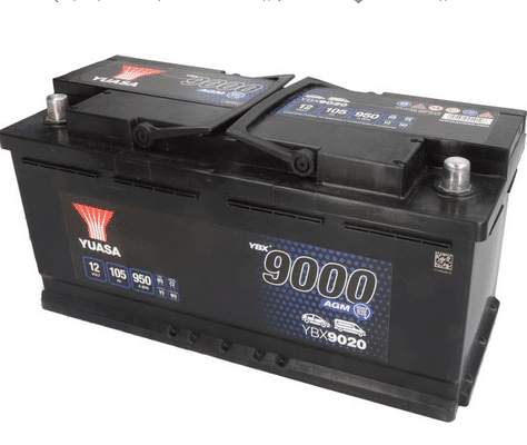 Battery YUASA 12V 105Ah/950A START&STOP AGM; YBX9000 AGM Start Stop Plus (R+ standard) 393x175x190 B03 – fitting flange 10.5 mm (agm/starting)