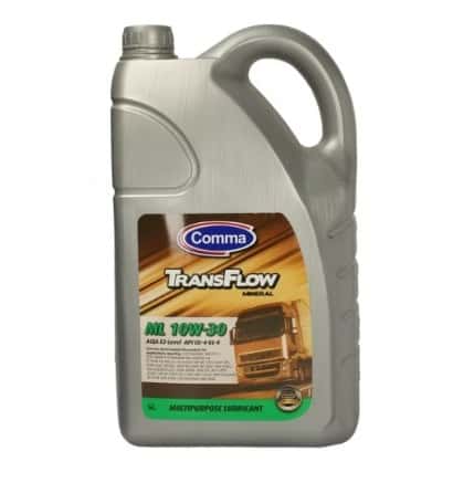 Масло COMMA TRANSFLOW ML 10W30 5L е минерално моторно масло за високопроизводителни дизелови двигатели със и без турбокомпресор, което е подходящо за смесен парк от тежкотоварни превозни средства