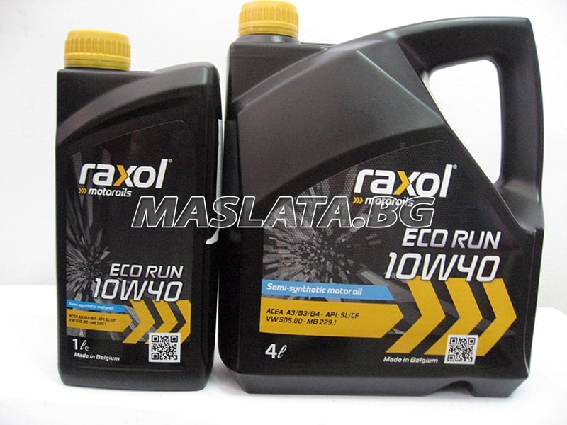 Масло RAXOL ECO RUN 10W40 4L Това моторно масло е базирано на висококачествени рафинирани с разтворител минерални и синтетични базови масла. Чрез добавяне на добре балансиран набор от добавки се получават следните свойства: Висок и стабилен вискозитетен индекс Бърз студен старт Силна устойчивост на окисляване. Безопасен смазочен филм при високи температури Силна защита срещу износване, корозия и образуване на пяна.