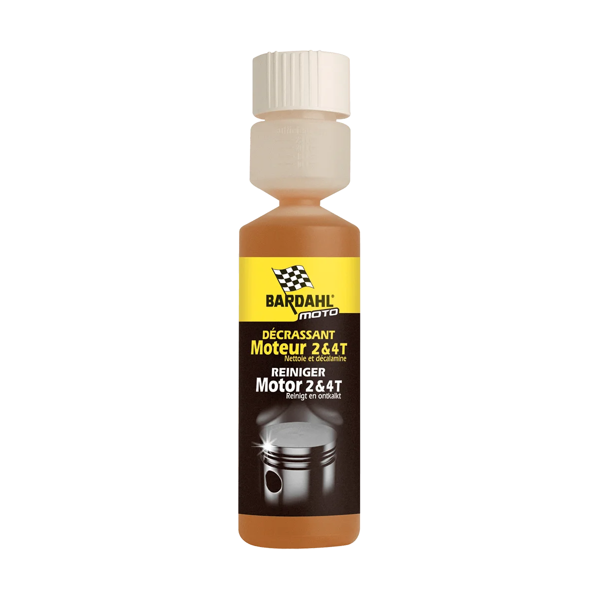 Почистващ препарат за 2- и 4-тактови мотоциклетни двигатели Bardahl BAR–3458 e специално разработен препарат за ефективно почистване на 2- и 4-тактови мотоциклетни двигатели. Формулата е създадена да се използва директно в резервоара с гориво, осигурявайки бързо действие, дълготраен ефект и повишена надеждност на двигателя.