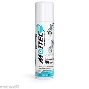 Бяла грес МОТТЕС 150ml Изключително подходяща за външна употреба смазка, създадена на база с тефлон. Благодарение на PTFE (поли-тетра-флуор-етан, тефлон) в състава си, смазката осигурява изключително леко триене на детайлите. Аерозолът трябва да е със стайна температура. Най-добра температура за работа между 5 и 30°C. Оптимален ефект се достига след изпаряването на разтворителя